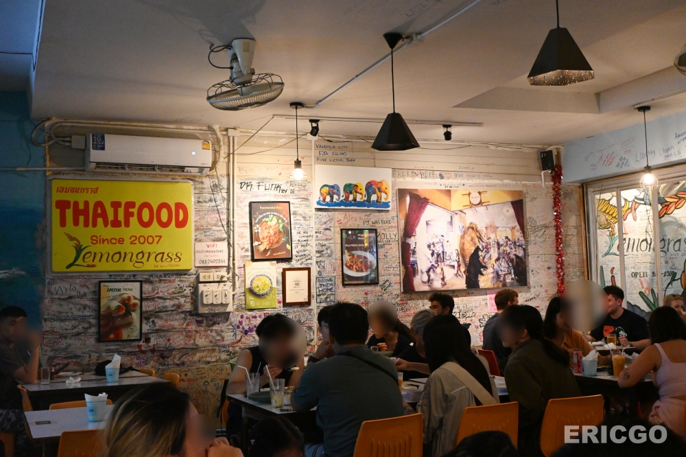 Lemongrass Thai Restaurant 本身不是那種裝潢非常華麗的餐廳,但環境算乾淨蠻有特色,是那種比較家庭式的泰式餐廳風格。生意很好,座位數也很多,經過幾次都是滿滿客人,有時候用餐時段還大排長龍。