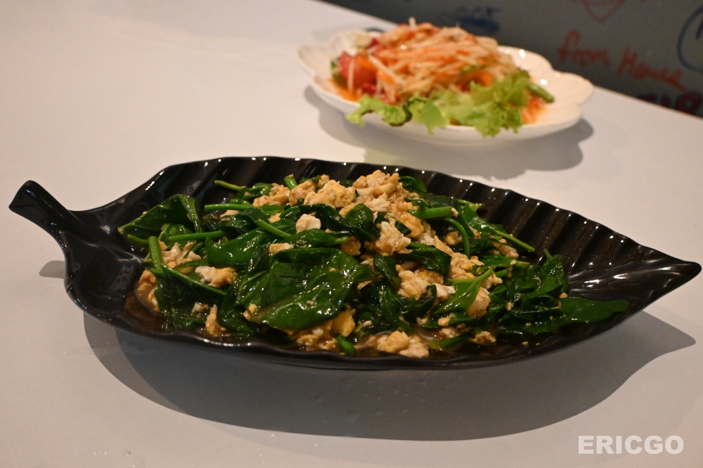 ไข่เจียวปู (Crab Omelette) – 180.00 THB:蛋煎得非常香酥,裡面包著滿滿的蟹肉,每一口都能吃到鮮甜的蟹肉,配上泰國米飯,簡單卻美味到不行,是小朋友也會喜歡的一道菜喔。