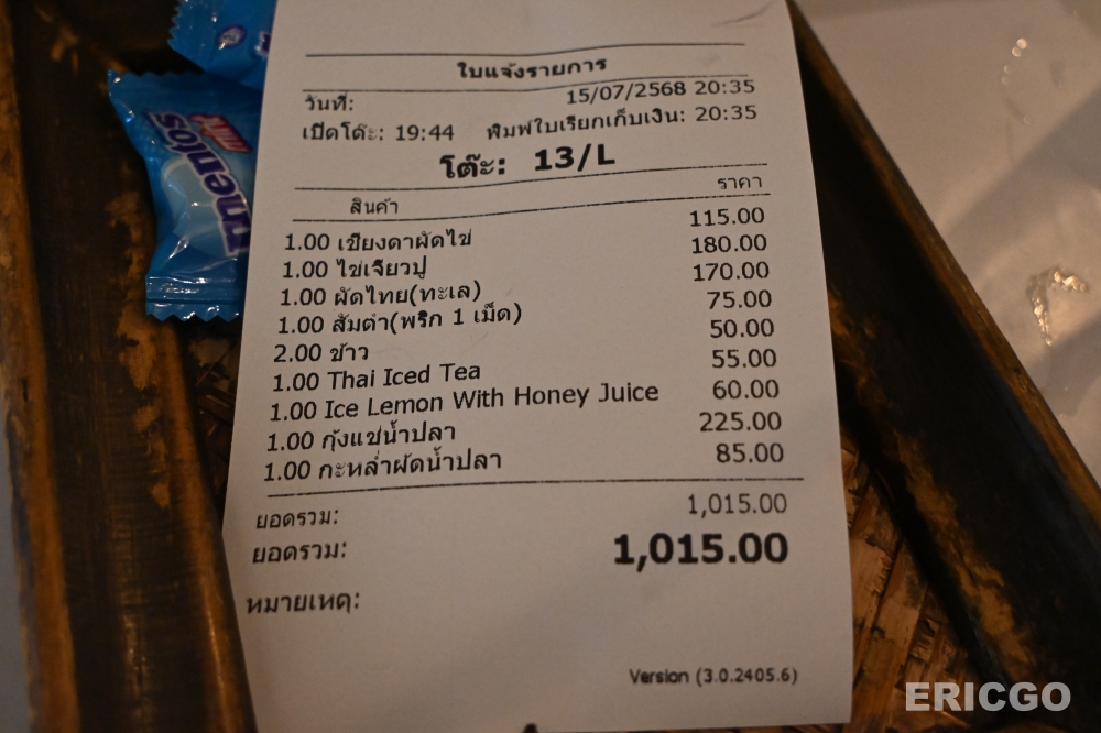 兩個人點了這麼多道菜,加上飲料,總共才1015泰銖,很划算!!服務人員態度蠻親切,英文對應也流利,上菜速度也蠻快的。最重要的是,這裡的泰國菜口味真的不錯,完全符合我對道地泰菜的期待,如果你是剛好在清邁夜市附近,想找一間交通方便、價格合理又好吃的泰式餐廳,那 Lemongrass Thai Restaurant 不會讓你失望的!