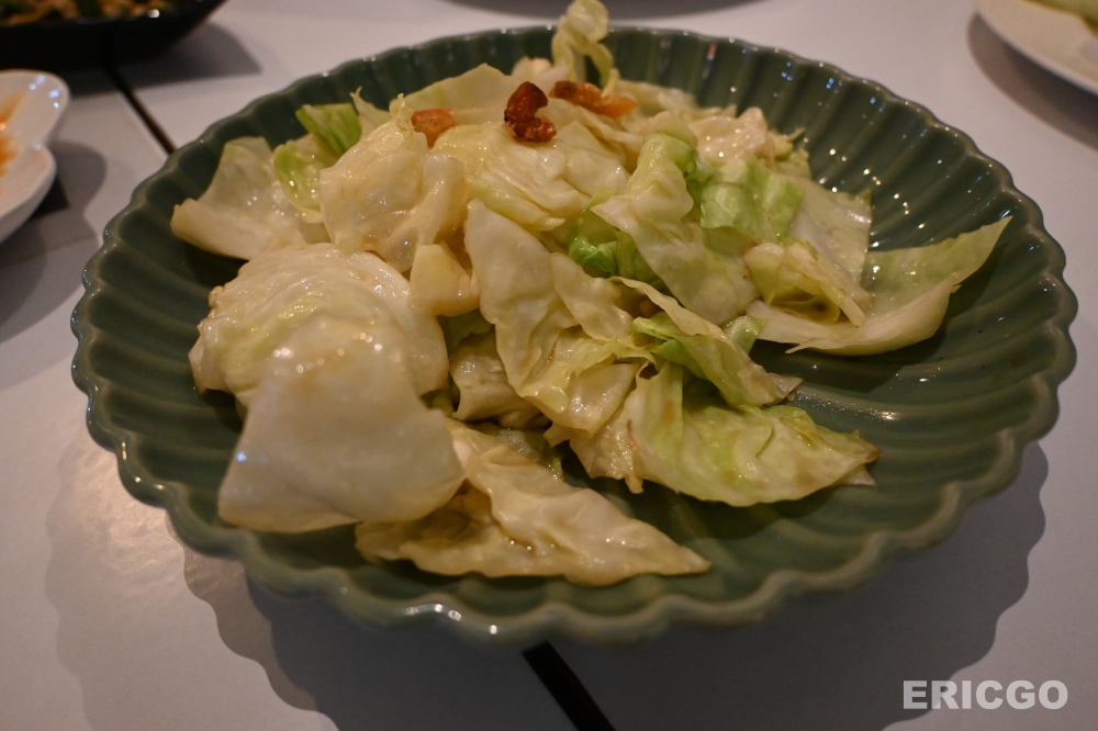 กะหล่ำผัดน้ำปลา (Stir-fried Cabbage with Fish Sauce) – 85.00 THB:看似簡單的魚露炒高麗菜,卻是餐桌上不可或缺的美味。高麗菜炒得清脆,魚露的鹹香把蔬菜的甜味都帶出來了,簡單卻超級好吃,我愛愛吃菜!