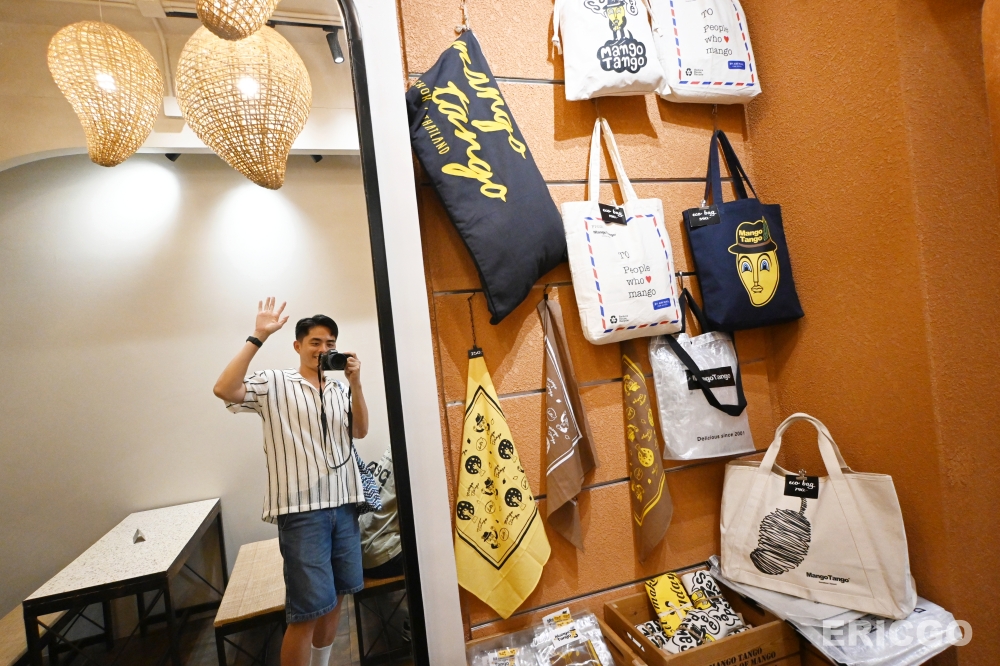 Mango Tango 的文創商品,設計上非常簡潔、可愛,而且辨識度很高。他們巧妙地將芒果的形狀、顏色,甚至那種熱帶的陽光感,融入到商品設計中。無論是小吊飾、杯墊,還是更大型的包包、T恤,你都能一眼看出這是 Mango Tango 的出品。