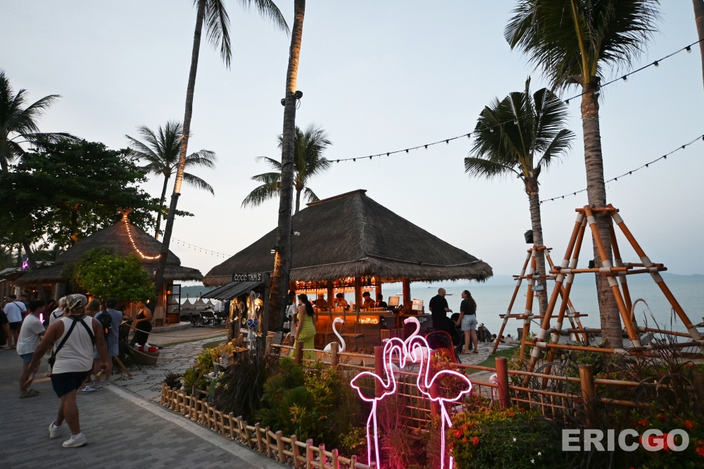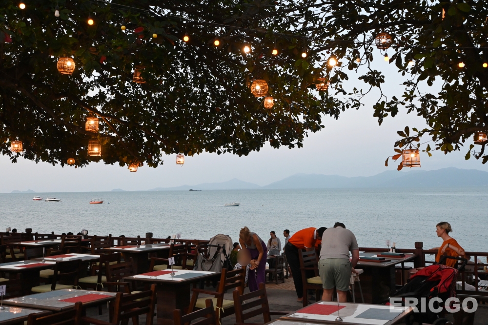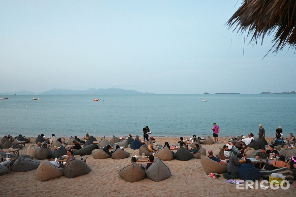 傍晚的波普海灘(Bophut Beach)也很迷人,夕陽西下的霞光將一整片海灘及天空鋪上一層浪漫的濾鏡。看著來來往往的歐美遊客,一瞬間還真有自己身在南歐地中海小鎮的錯覺。
