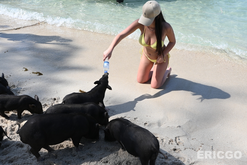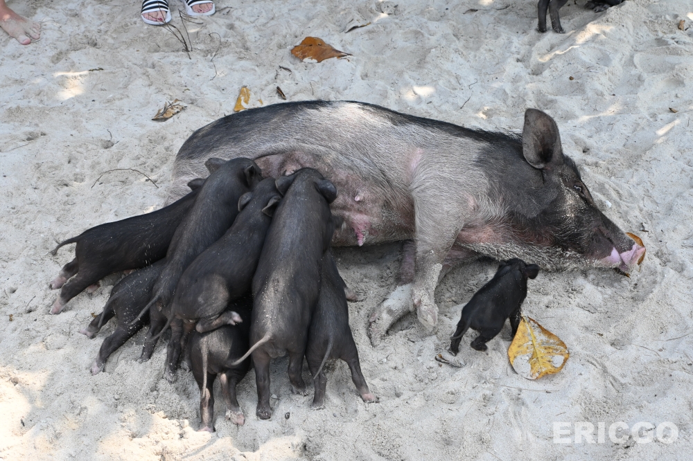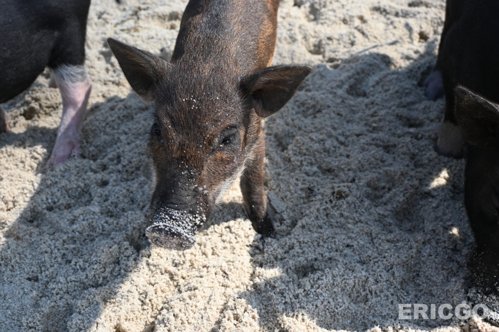 看著這些可愛的豬隻在海灘上散步、挖沙、在淺灘中嬉戲,真的非常療癒!